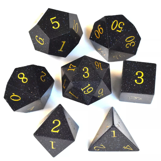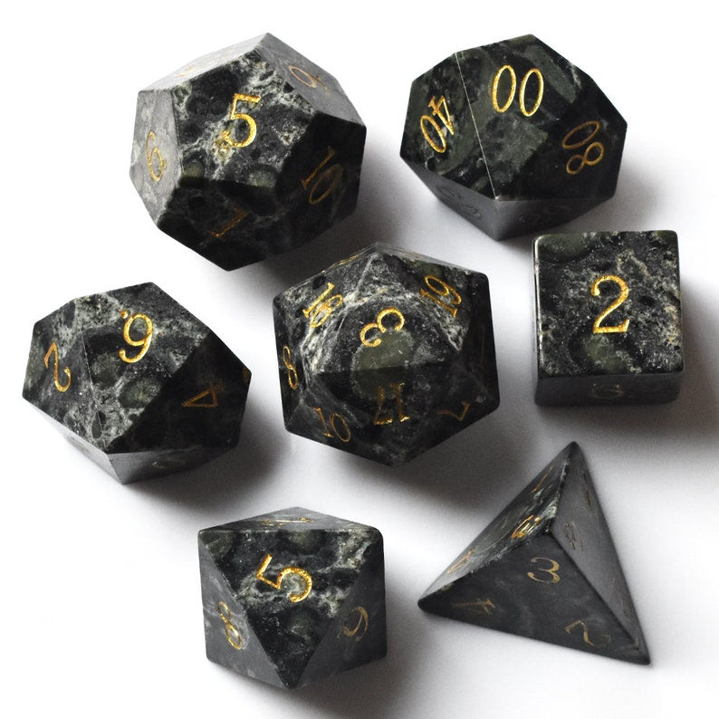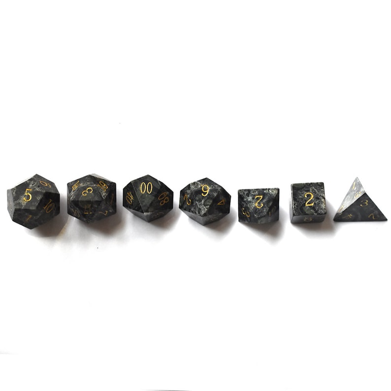 Black Labradorite Gemstone Dice Set-DnD D and D Dice Set
