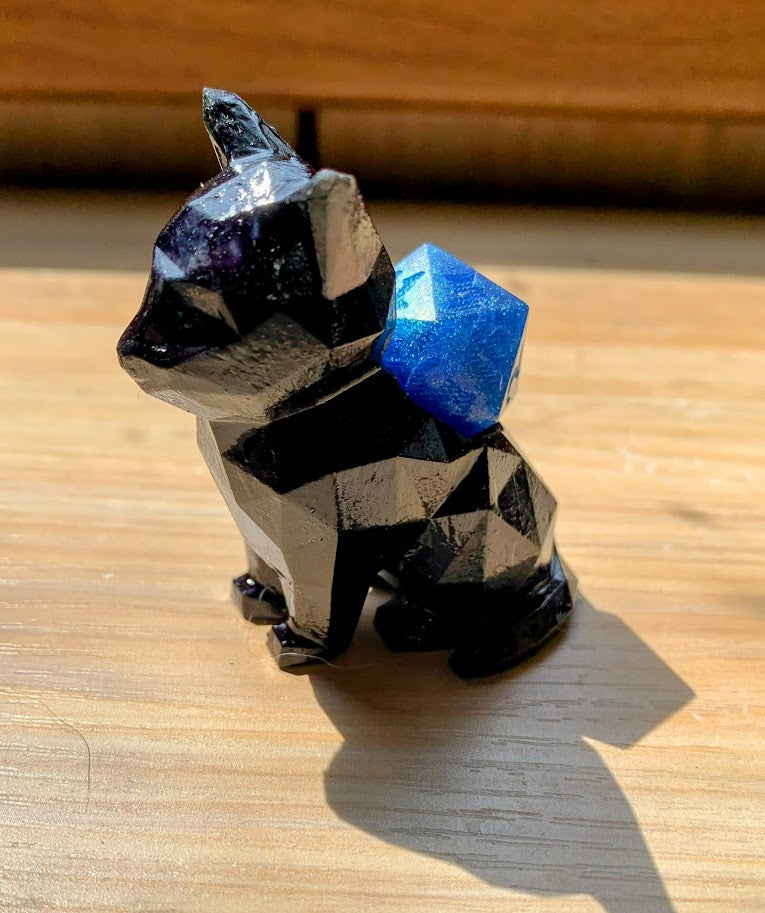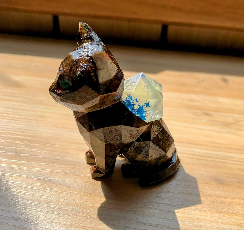 Low Poly Cat D20 Dice Stand Dice Guardian + Mystery D20 (Random Color)