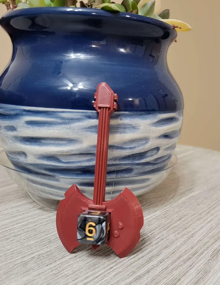 Bardic Inspiration D6 Dice Holder: Axe Guitar + Mystery Dice (Random Color)
