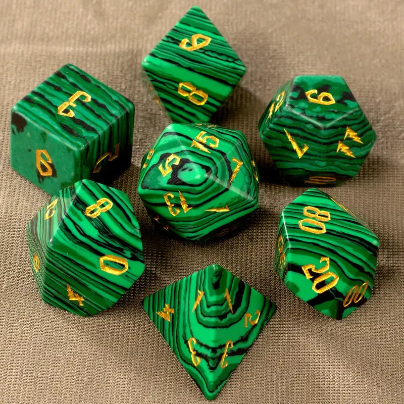 Green malachite gemstone dice set