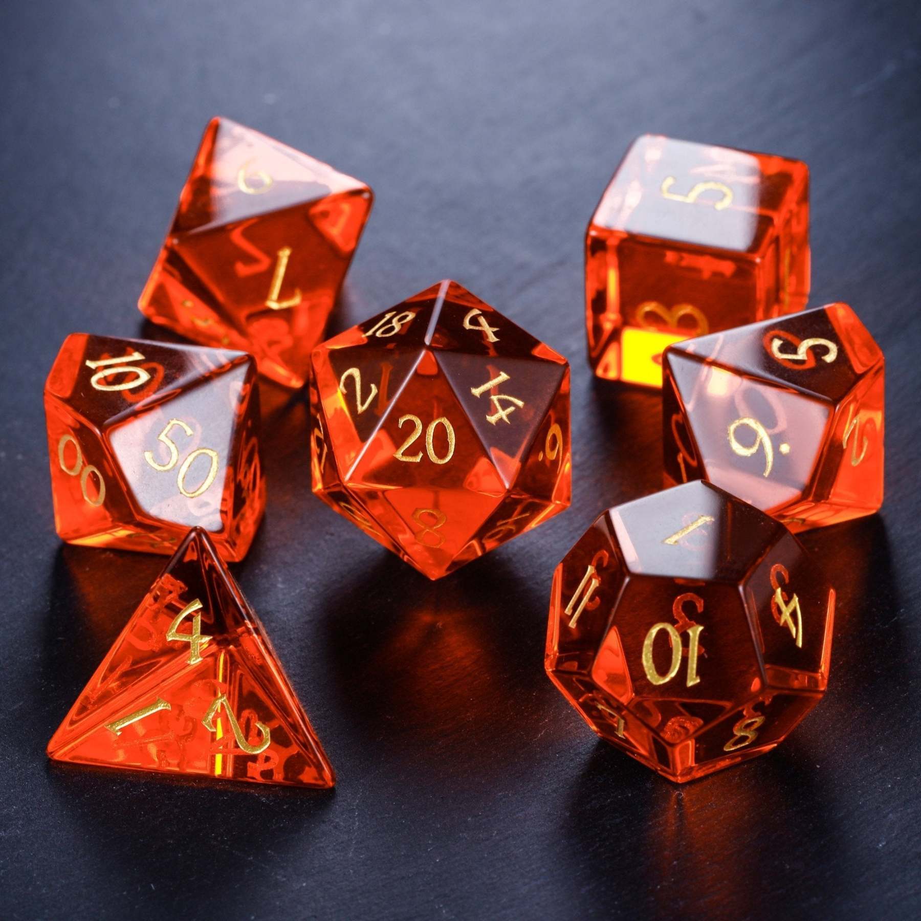 This is a full set of polyhedral dice. These are perfect for any RPG such as Dungeons and Dragons, Pathfinder, Shadowrun, Savage World, Math Games or anything else you can think of.