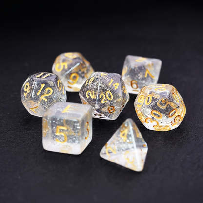 - Contains: 1 * D20, 1 * D12, 2 * D10 (1 Percentage Die), 1 * D8, 1 *d6, 1 * D4 Dice;